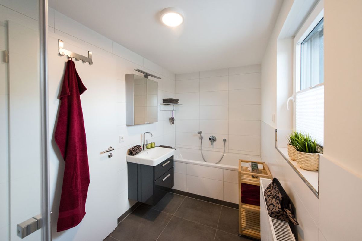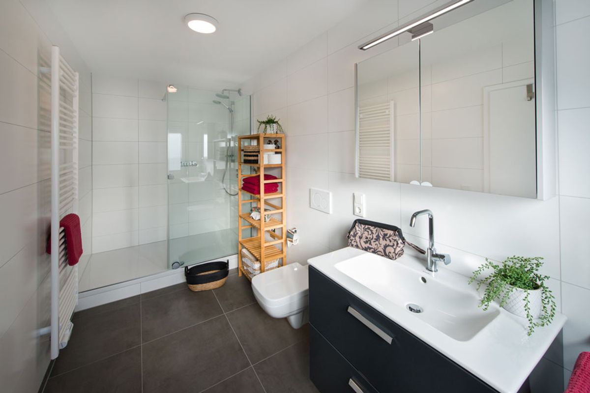- Bade-Highlight: Neben der superflachen Dusche mit Regenbrause verfügt das Tageslicht-Bad dieser Wohnung zusätzlich über eine Badewanne – ideal zum Entspannen nach einer Wanderung durch die Weinberge.