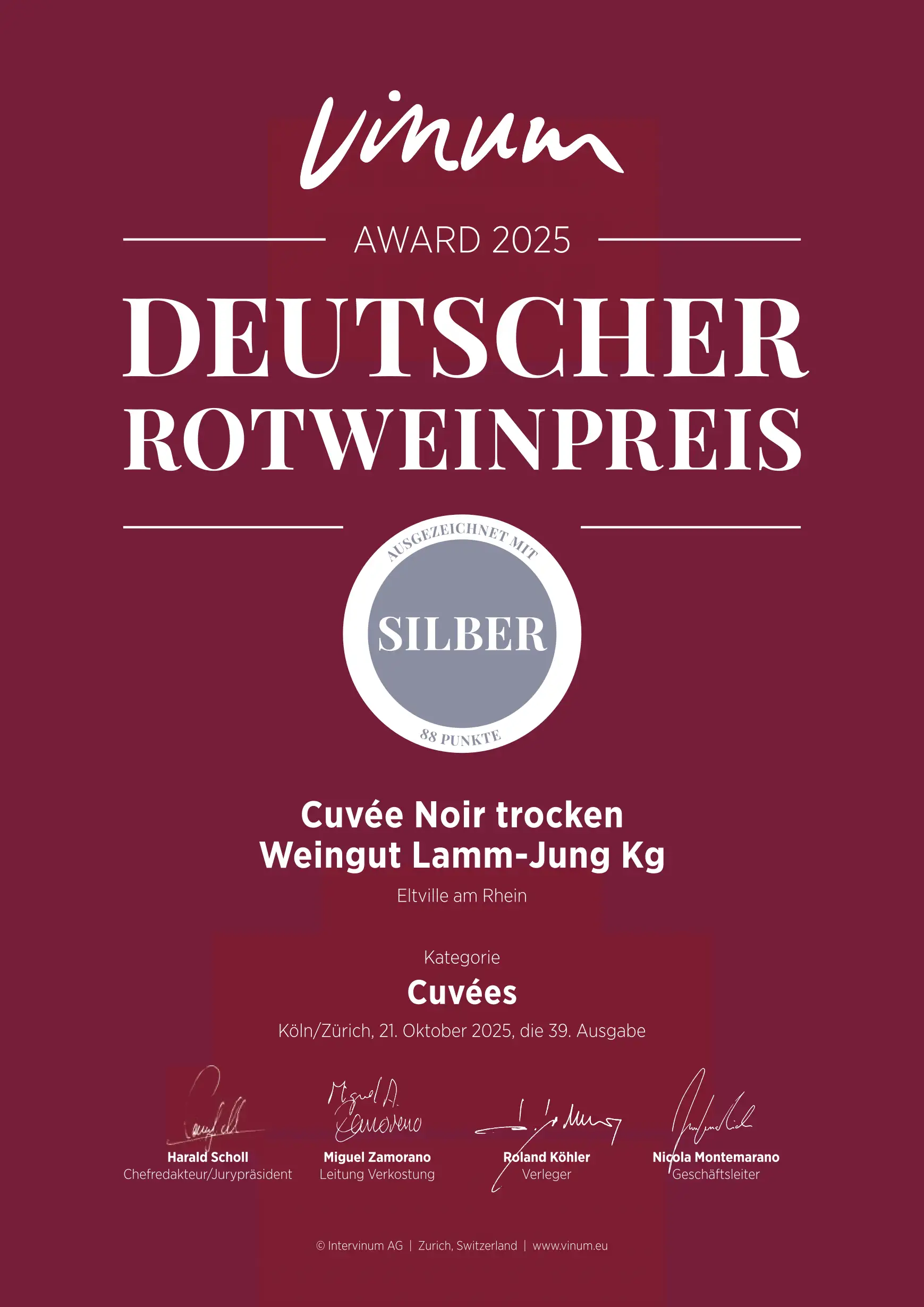 Wettbewerb: VINUM Deutscher Rotweinpreis 2025 (Kategorie 8: Cuvées).